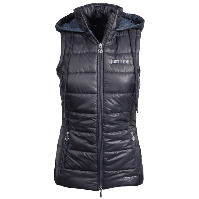 Sportieve en gevoerde bodywarmer met een capuchon met een trekkoord. De bodywarmer heeft verder een tweeweg ritssluiting, twee steekzakken met ritssluiting en de voering heeft een alloverprint.