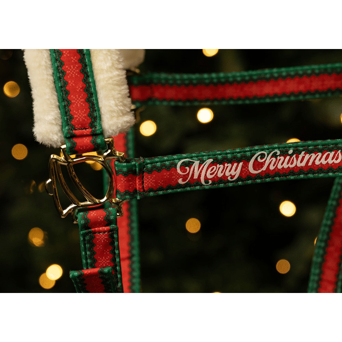 Breng jouw paard in ultieme kerstsfeer met deze feestelijke halsterset in kerstmotief.