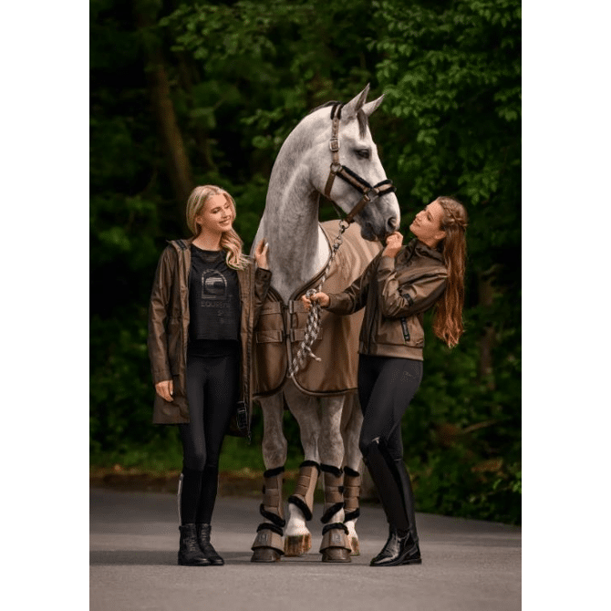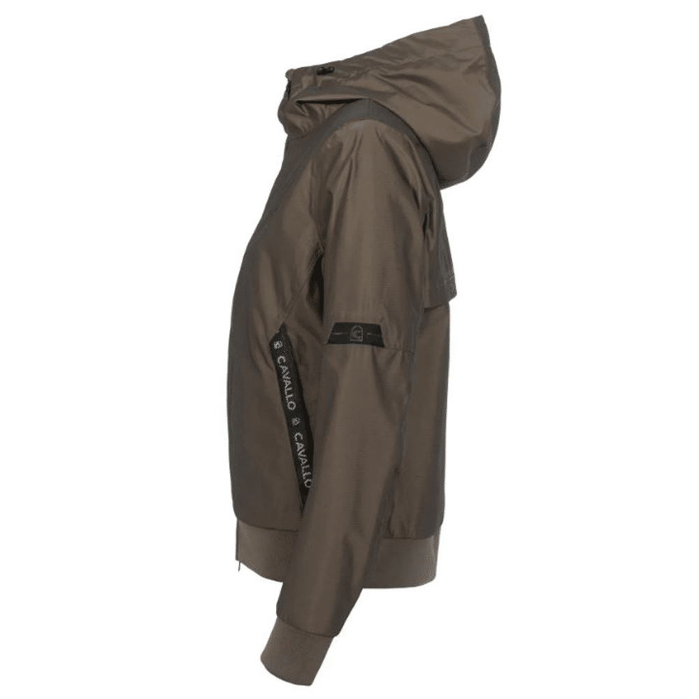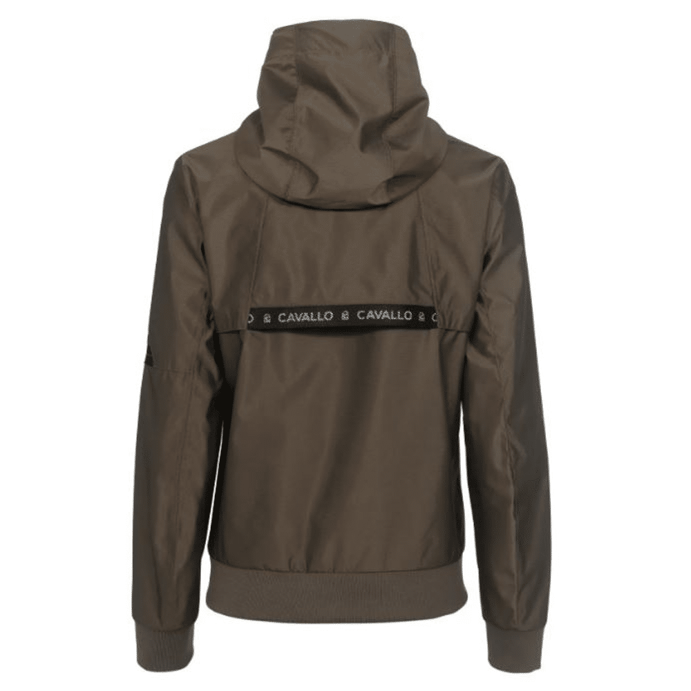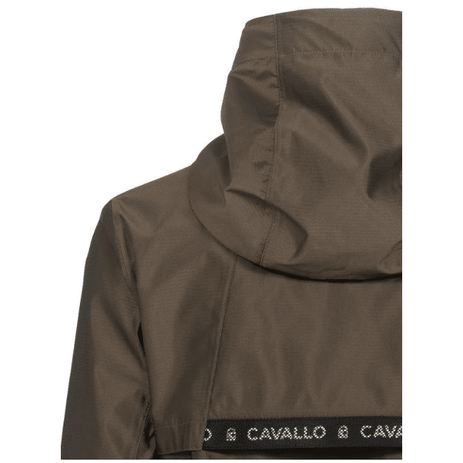 • De capuchon kan aan de achterkant worden vastgemaakt met een Cavallo drukknoop.