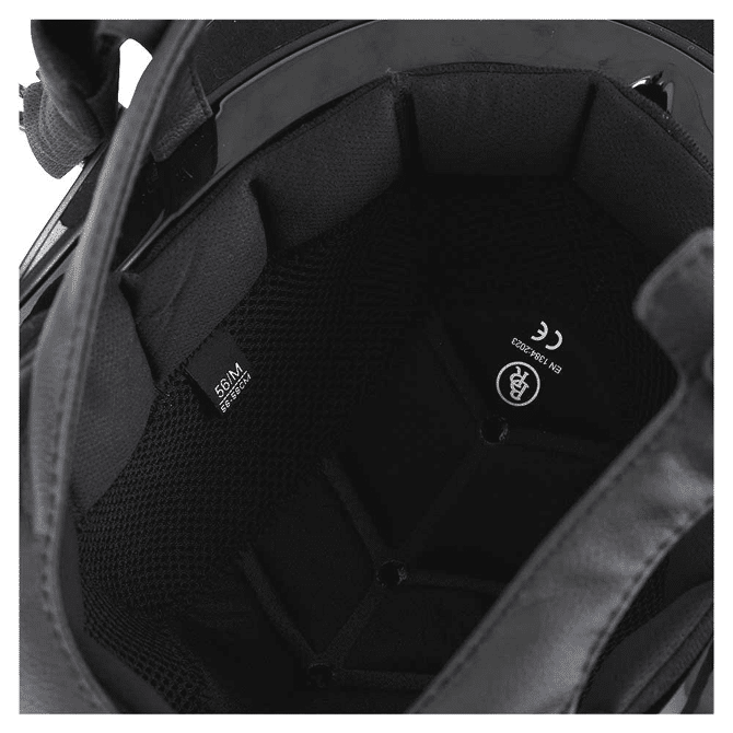 Deze stijlvolle rijhelm met strak, mat design, is omhuld met een gunmetal rand en biedt veel draagcomfort. Geniet van optimaal draagcomfort door de bijpassende voering in jouw maat erbij te bestellen. De helm voldoet aan de EN1384-2023 veiligheidsnormering.