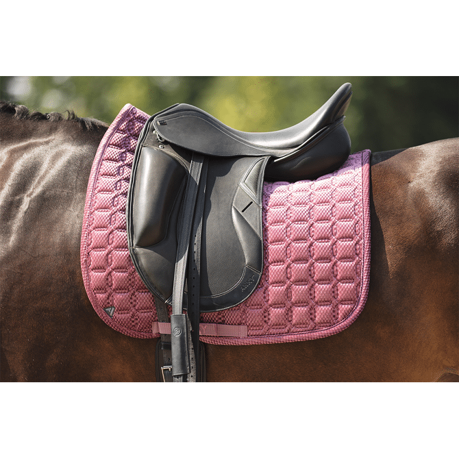 Deze luxe, zachte velvetpad met diamantvormige stepping is een streling voor het oog en anatomisch gevormd om je paard te voorzien van optimaal comfort. De voering is extreem sneldrogend en vochtregulerend zodat de paardenrug op ieder moment droog blijft. De dubbele singellussen zorgen voor een stevige ligging van de singel.